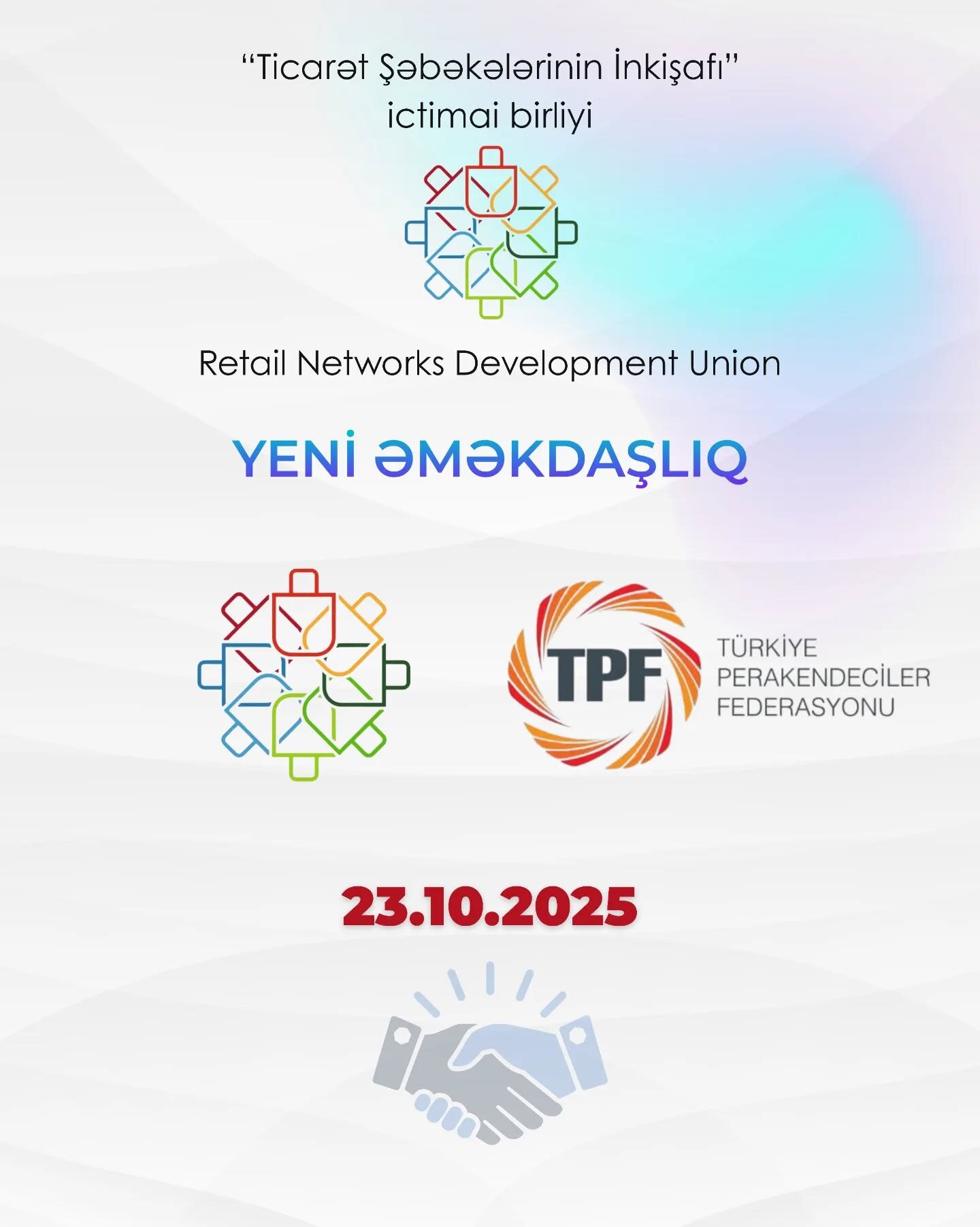 23 oktyabr 2025-ci il tarixində Bursa şəhərində Ticarət Şəbəkələrinin İnkişafı İctimai Birliyi (TŞİİB) ilə Türkiye Perakendeciler Federasyonu (TPF) arasında əməkdaşlıq niyyətini əks etdirən protokol imzalanıb.