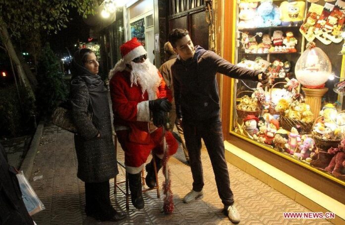 Tehranda Milad bayramı ilə əlaqəli əşyalar satan mağazanın fonunda, xüsusilə “Santa Klaus”la şəkil çəkdirməyə qadağa qoyulub.