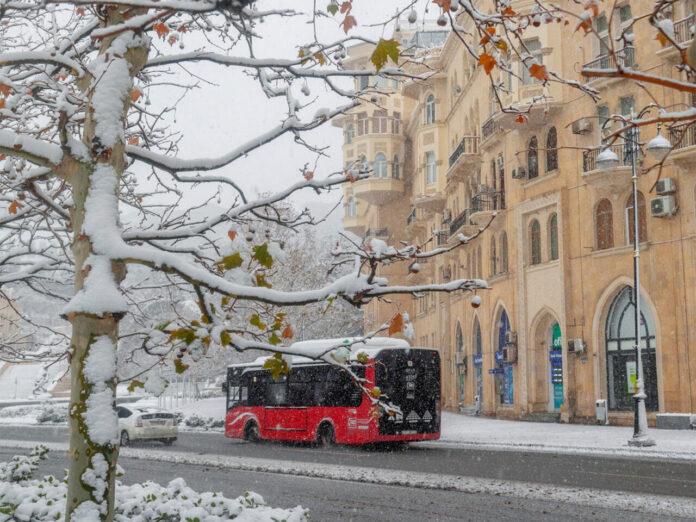 Bakının bir hissəsi ağ örpəyə bürünüb, digər tərəfi isə yox. Bakının müxtəlif nöqtələrində eyni saatlarda kəskin fərqlənən hava şəraiti müşahidə edilib və bəzi yüksəkliklərdə nəqliyyatın hərəkəti tamamilə dayanıb.